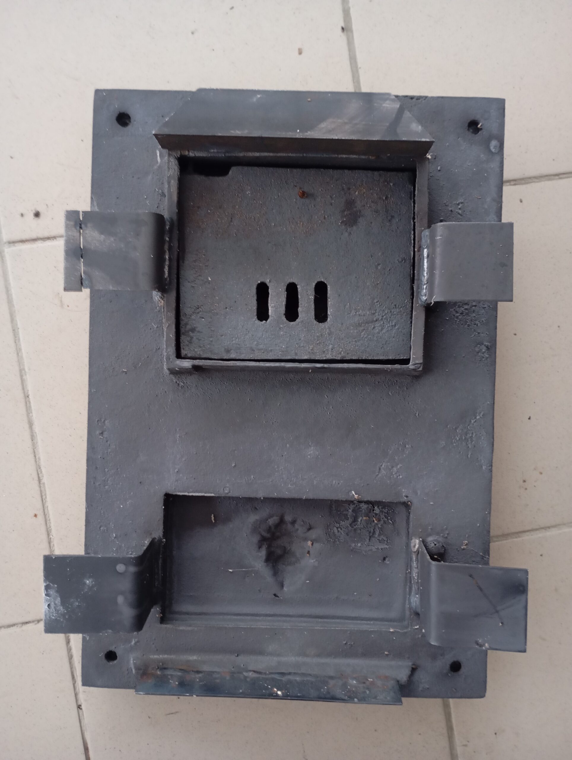 AKCIA! Dvierka poloblúkové liatinové, s popolníkom, so sklom, rozmer 50 x 33 cm